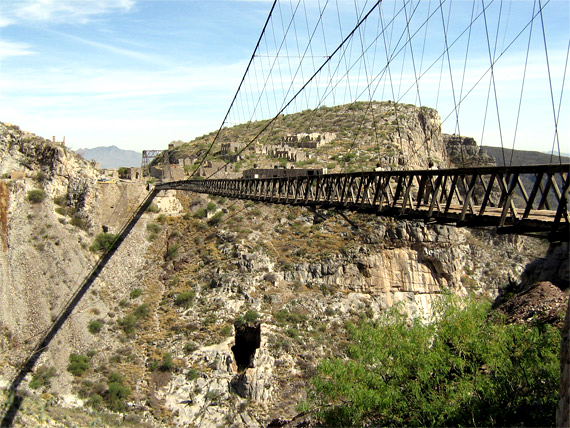 Після завершення будівництва міст Охуела довгі роки залишався одним із найдовших підвісних мостів у світі. Відрізнявся він і високою міцністю, для зміцнення конструкції розробники використовували сталеві троси, що для кінця 19 століття було серйозною інновацією. Міст активно використовувався робітниками, а коли золоті та срібні копальні вичерпалися, прийшов у запустіння, так само як і місто Охуела. Сьогодні прокладений на величезній висоті міст привабливий для любителів екстриму. Прохід по ньому мимоволі дарує відчуття «невагомості», і все завдяки відкритій конструкції мосту та значній висоті. Додають страху та розташовані з усіх боків гострі скелі, приплив адреналіну під час прогулянки мостом гарантований. Сьогодні значних розмірів міст, довжина якого становить понад 275 метрів, входить до числа визначних туристичних визначних пам'яток. Ці місця люблять відвідувати шанувальники фотомистецтва, з мосту відкривається шикарний краєвид на каньйон. [Далі – Мавпячі мости]