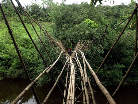 На малазійському острові Борнео є унікальний міст Саравак, свою назву він отримав на честь розташованого неподалік села. Конструкція мосту справді унікальна, він повністю збудований з бамбука, гілки якого скріплені тонкими тросами. Розташовані під кутом до основи перила роблять міст ще екстремальнішим, також варто відзначити, що конструкція є досить крихкою і одночасно може витримати не більше двох дорослих людей.