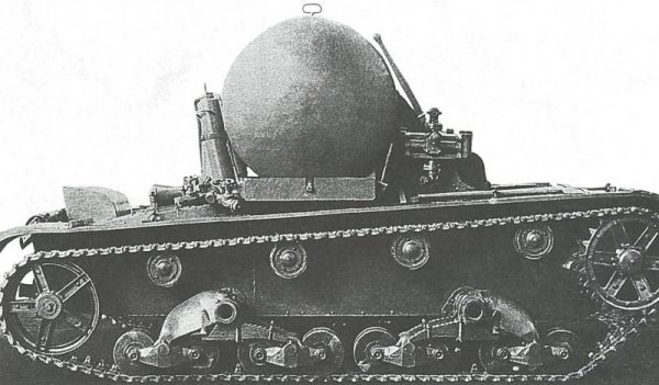 Танк-цистерна ТР-26Ц. Ленінград, 1936 рік. Перед цистерною встановлений ручний насос для перекачування палива. За нею два пінні вогнегасники.