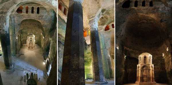Це найбільший підземний храм у Європі – його основний зал сягає майже 18 метрів у висоту. Вирізаний безпосередньо у вапнякових горах і прихований під древнім обвалом каміння, храм тривалий час залишався невідомим, поки його знову не відкрили для загалу у 1950-х. Всередині знаходиться низка ям і склепів, в яких зберігаються мощі та реліквії, зокрема і понад 80 кам’яних саркофагів.