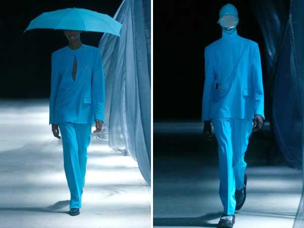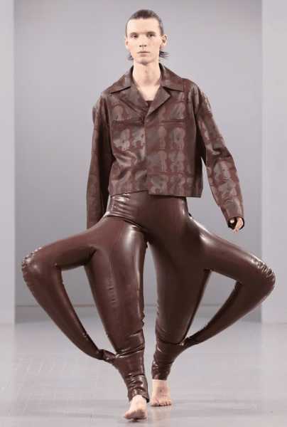 Надувні штани із чотирма штанинами викликали небувалий ажіотаж. Також у рамках показу було продемонстровано величезні дуті куртки з неосяжними рукавами. До речі, у подібному прикиді на червоній доріжці з'являвся співак Сем Сміт на церемонії нагородження Brit Awards 2023.