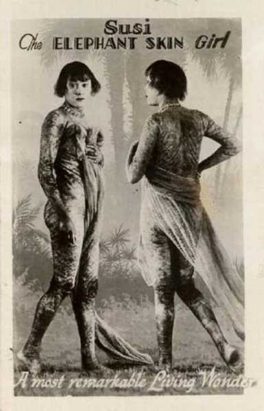 Зірка фрик-шоу 1920-х років Сюзі страждала на їхтіоз порушенням процесу ороговіння шкіри. Її шкіра була лусчастою, сірою і потрісканою, точнісінько нагадуючи слоном. З такою особливістю їй була одна дорога до цирку виродків. Сюзі зробила чудову кар'єру і чудово заробляла, але, за свідченнями очевидців, дуже страждала від своєї роботи, оскільки була сором'язлива і не любила виставляти себе напоказ.