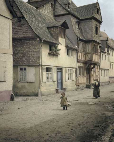 Дівчинка з кошиком прямує ґрунтовою дорогою. Німеччина, 1904 рік.