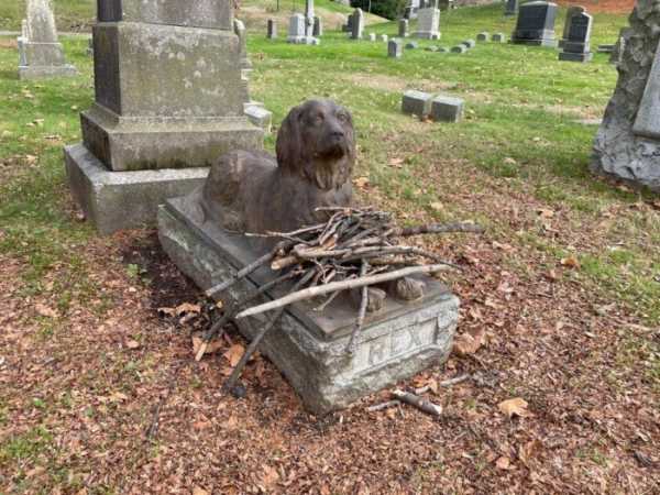 Замість квітів люди несуть ціпки до могили цього собаки.