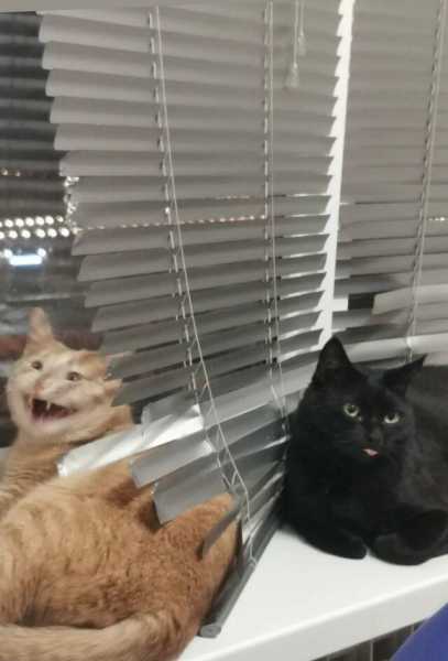 Чоловік гадав, що коли повісити жалюзі, наші киці перестануть вилазити на вікно. Та де там, тепер вони в них застряють