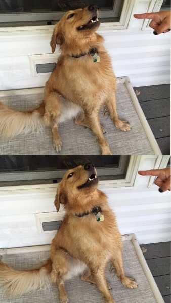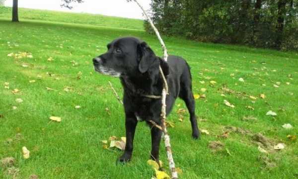 Наш песик якимось чином запхав палицю собі за комір