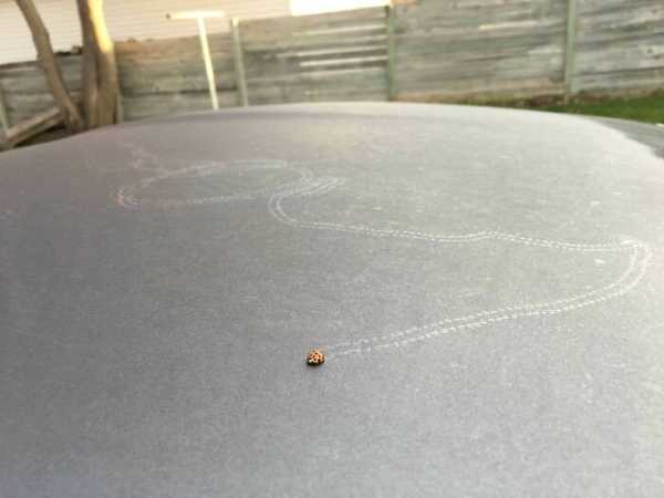 «Сонечко залишило відбитки у ранковій росі на моїй автівці»