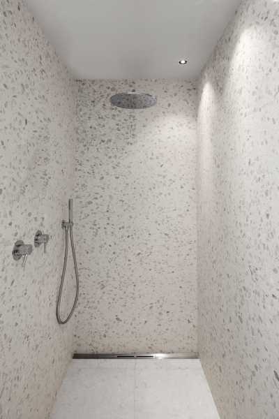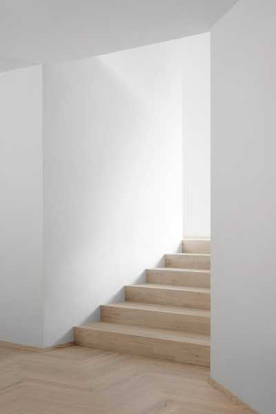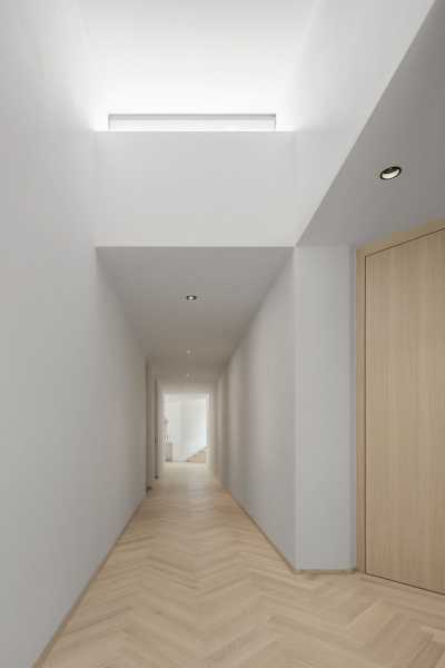 Всередині будинок організований як три поєднані частини. В одній частині розташована основна житлова зона з кухнею та їдальнею, а в двох інших частинах розміщені спальні, зокрема великий головний номер. Значне засклення, а також продумано розміщені вікна роблять простір світлим та поєднаним з навколишніми краєвидами. Архітектори обрали матеріали, які створюють теплу, але лаконічну та мінімалістичну атмосферу. Кольорова гама з використанням бетону, тераццо та дерева забезпечує гармонію між внутрішніми та зовнішніми просторами. Окрім центрального двору, велика тераса на верхньому рівні слугує альтернативним місцем для відпочинку на свіжому повітрі і пов’язана з мезоніном.
