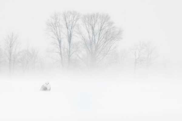 Я мешкаю у сільськогосподарському районі у південно-центральному Онтаріо. Щозими білі сови мігрують на південь з Арктики, аби полювати на полівок у полях. Під час сильної снігової бурі ця сова лишалася на землі. Відзначено почесною нагородою, тварини у рубриці «Навколишнє середовище».