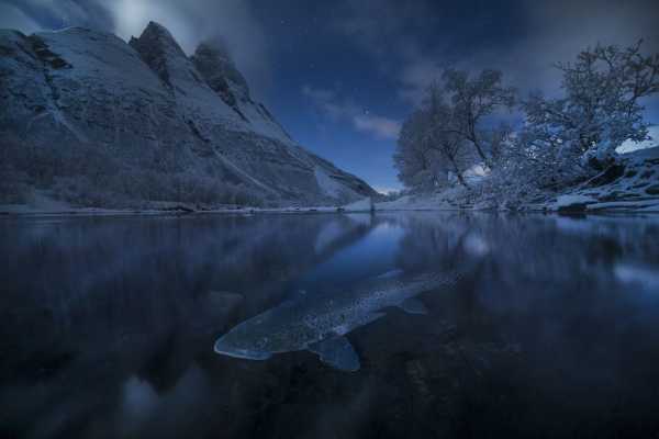 У Сигналдалені, на півночі Норвегії, бура форель була зафіксована під зорями у місячну ніч. Відзначено почесною нагородою, рубрика «Краса природи».