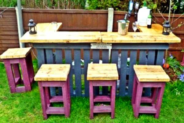 Для тих, хто не має змоги спорудити повноцінну літню кухню, але любить збиратися товариством, щоб випити чарку-другу, радимо звернути увагу на саморобну барну стійку. Для її створення вам знадобиться лише кілька дерев’яних піддонів.