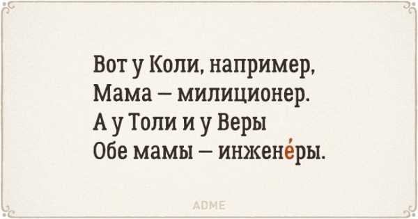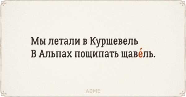 Головна Статті Правильні вірші, щоб запам'ятати наголоси Правильні вірші, щоб запам'ятати наголосиINFBusiness23.10.2025Статті Є в російській мові слова з підступними наголосами, про які хоч раз «спотикався» кожен із нас. Источник: zefirka.net Rate this item:1.002.003.004.005.00Submit Rating No votes yet. Please wait... Попередній Запис Чуттєва еротика в витончених роботах Марка Лагранжа Наступний Запис Таємне життя сірників на знімках індійського художника Пов’язані записи Міжнародна фієста повітряних куль в Альбукерці24.10.2025 Чому оркестр не може грати без диригента?24.10.2025 Іноді творчість художника виходить за межі реальності24.10.2025 Залишити відповідьСкасувати відповідьВаша e-mail адреса не оприлюднюватиметься. Обов’язкові поля позначені * Ім’я * Email * Додати коментар * Опублікувати коментар Δ Цей сайт використовує Akismet для зменшення спаму. Дізнайтеся, як обробляються дані ваших коментарів.