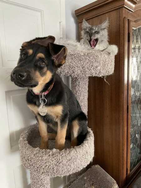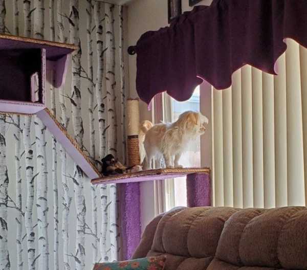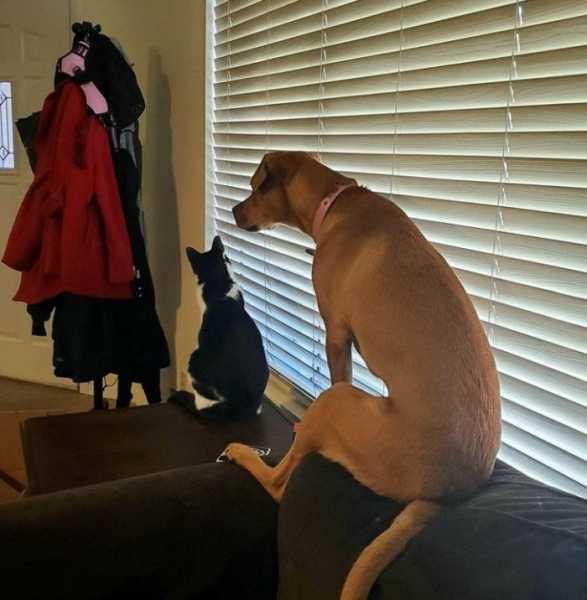 Ми всі рано чи пізно переймаємо манери з оточення. Домашні улюбленці – не виняток! Усім відомо, як зазвичай поводяться собаки: їм до вподоби променади, частування та ганяння за іграшкою. Проте іноді песики проводять занадто багато часу з котами і поступово починають наслідувати їхні звички. Вони охоче бавляться у котячих притулках, залазять у ящики, відпочивають на вікнах і навіть лапки складають по-котячому. Хазяям лишається тільки здивовано на це спостерігати і дивуватися: “Стривайте, а чи точно я завів пса?”.
