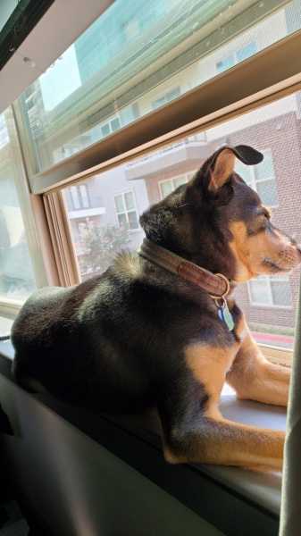 Він любить залізти на столик і визирати за злими сусідськими псами. Коли в усьому береш приклад із кішки, а вона ще й незадоволена