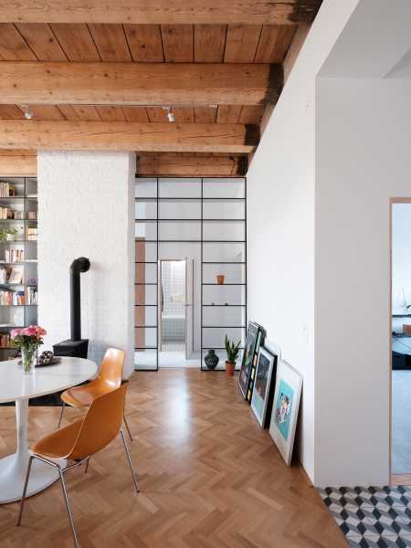 Квартира площею 100 квадратних у Трнаві, Словаччина, розташована в колишньому монастирі, побудованому в 1719 році. У середині XX століття він був перетворений на житловий будинок. Автори проекту JRKVC поставили за мету трансформувати цей простір з великою кількістю тимчасових шарів у чисте та функціональне житло. Архітекторам вдалося розкрити переваги старих методів будівництва, вклавшись у розумний бюджет.
