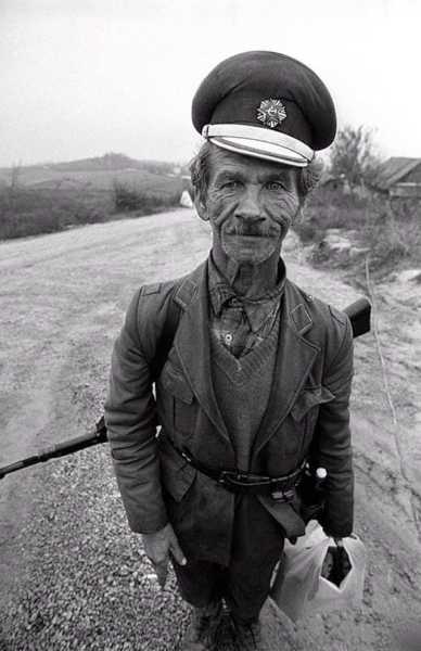 Дід в уніформі UNPROFOR на блокпосту Українського миротворчого контингенту ООН, Сербська Країна, 1994 рік.