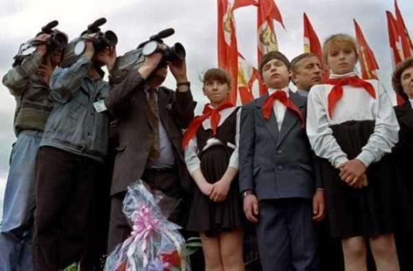 Пострадянські піонери уважно слухають промову лідера КПРФ Геннадія Зюганова, 1996, Красноярськ.