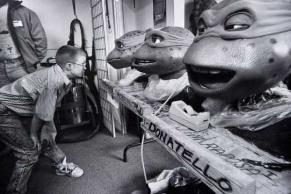 Голови черепах-ніндзя на зйомках фільму «Черепашки-ніндзя III», 1993 рік.