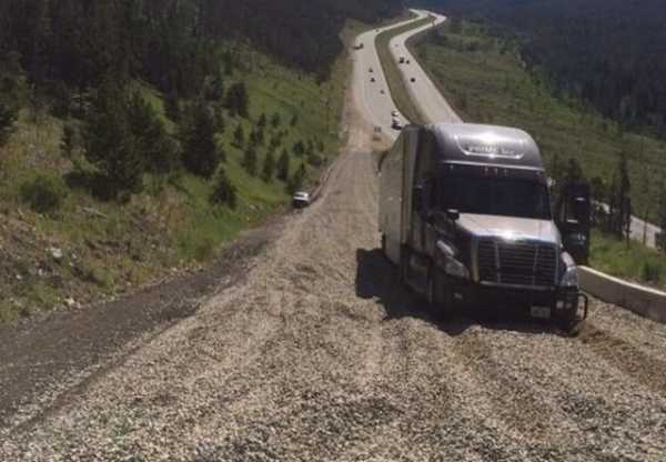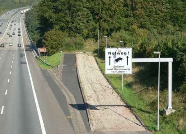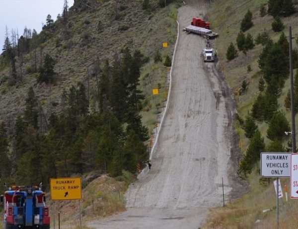 Перед вами глуха гілка на шляху, яку в Сполучених Штатах називають Runaway ramp. Подібні відгалуження можна побачити на трасах із тривалим ухилом, і вони призначені для великих вантажних машин, у котрих вийшли з ладу гальма. Шлях вкривають значним шаром щебеню, а по краях можуть розміщувати ємності з водою. Оскільки гілка розташована на підйомі, вона здатна зупинити навіть найбільші фури без гальмівної системи.