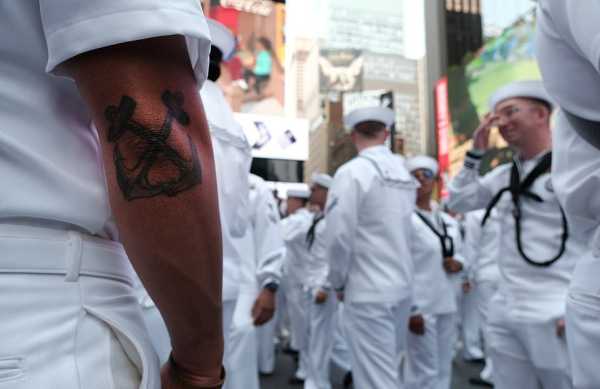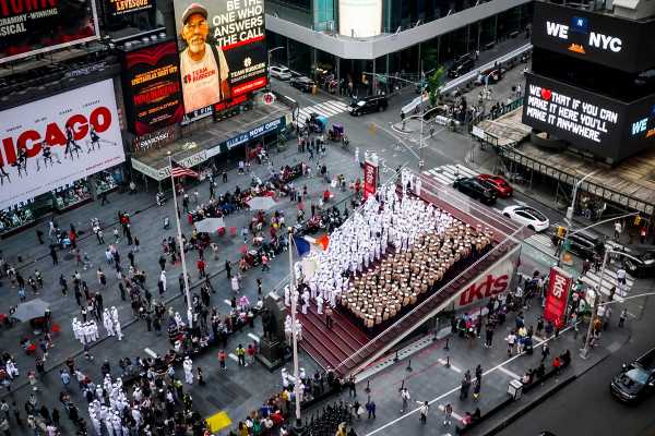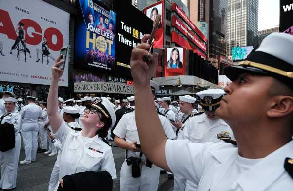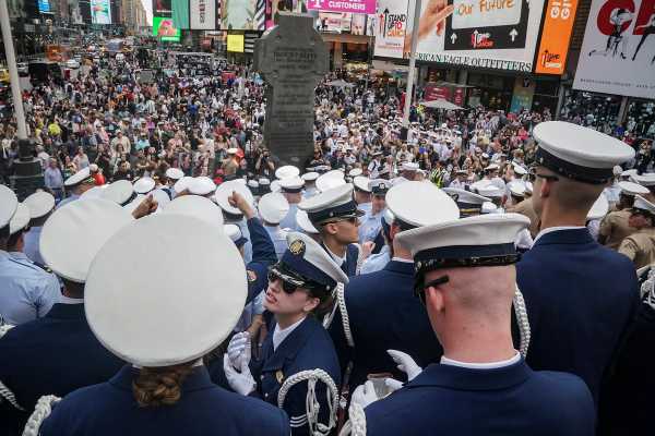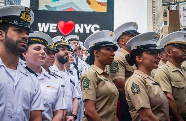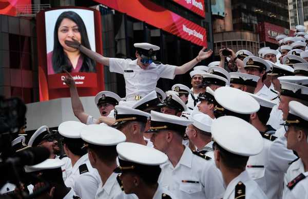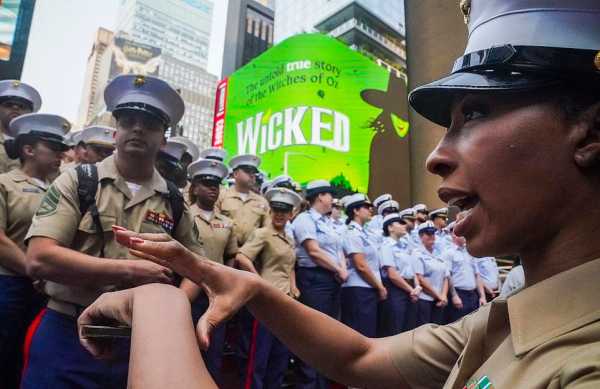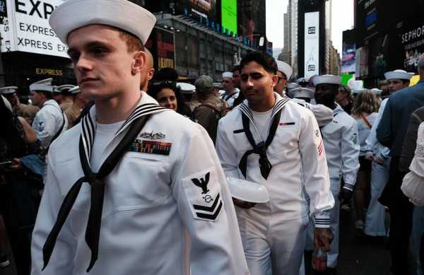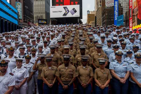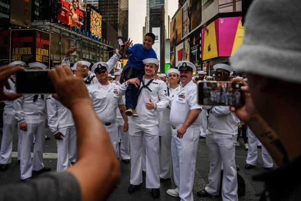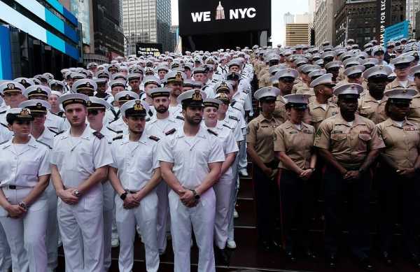 З початком 35-го щорічного тижня флоту в Нью-Йорку, тисячі представників військово-морських сил, корпусу морської піхоти та берегової охорони заповнили площу Таймс-сквер на Манхеттені.