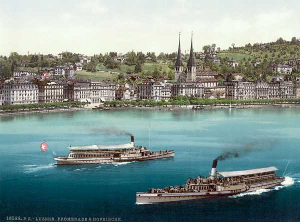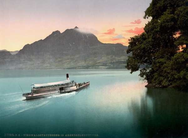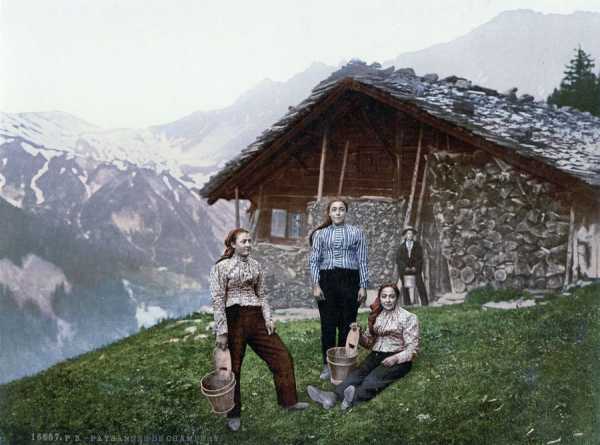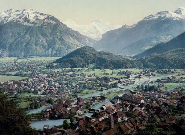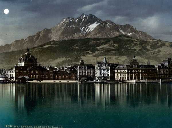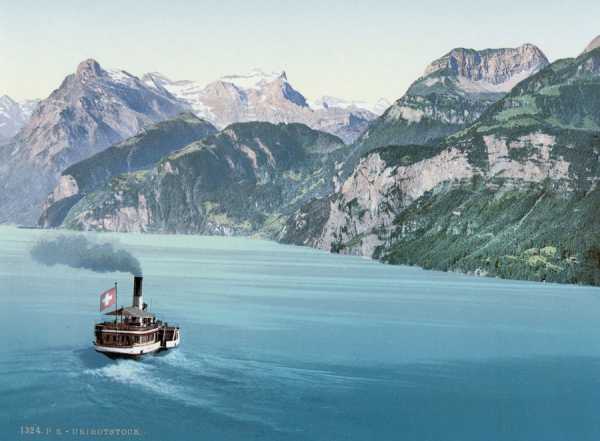 Ці зображення з зображеними пейзажами та містами Швейцарії були створені за допомогою процесу фотохром (Photochrom), який застосовувався для реалістичного розфарбовування чорно-білих знімків.