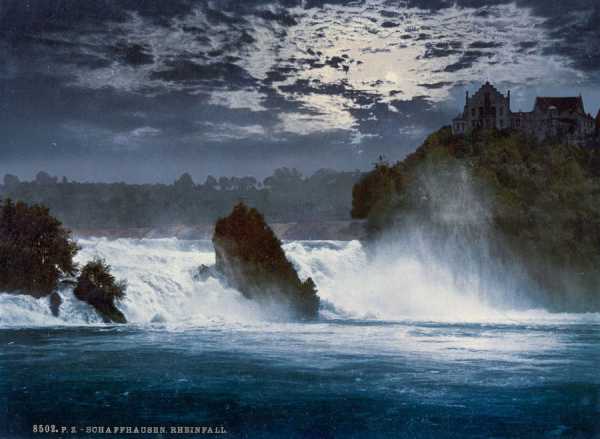 Водоспад на Рейні в місячному світлі, місто Шаффхаузен.