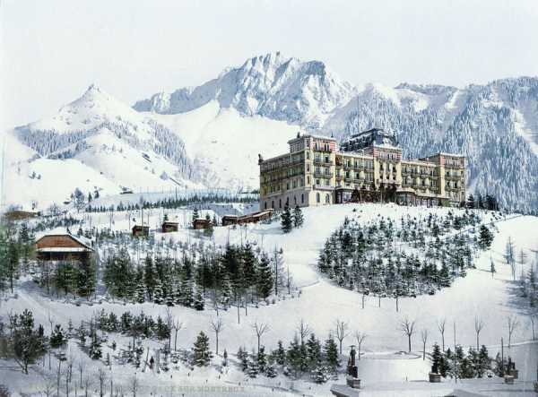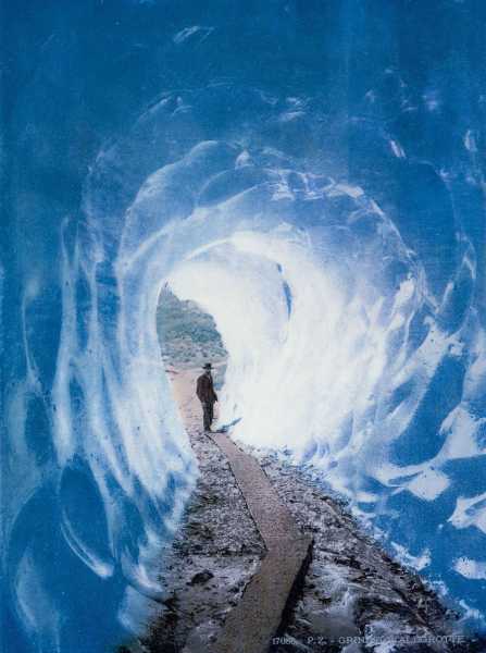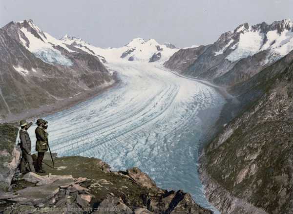 Величні гори, курортні міста, льодовики та водоспади у старовинних кольорових листівках.