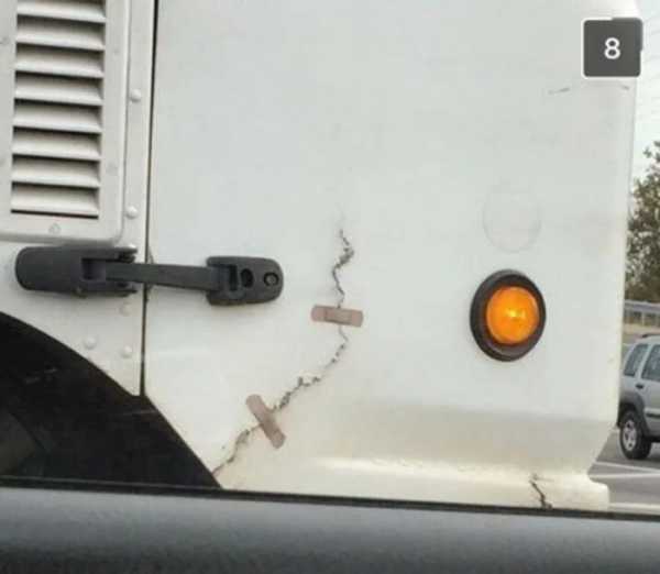 Якщо під рукою є ізолента, плівка, пластирі, скотч та велика частка фантазії! Ось що виходить у таких випадках. Полагодили, як змогли…