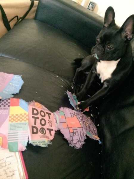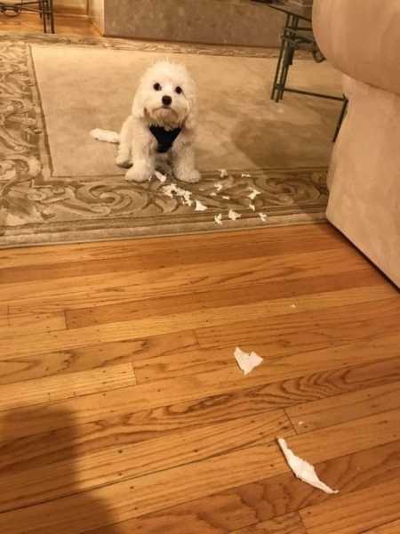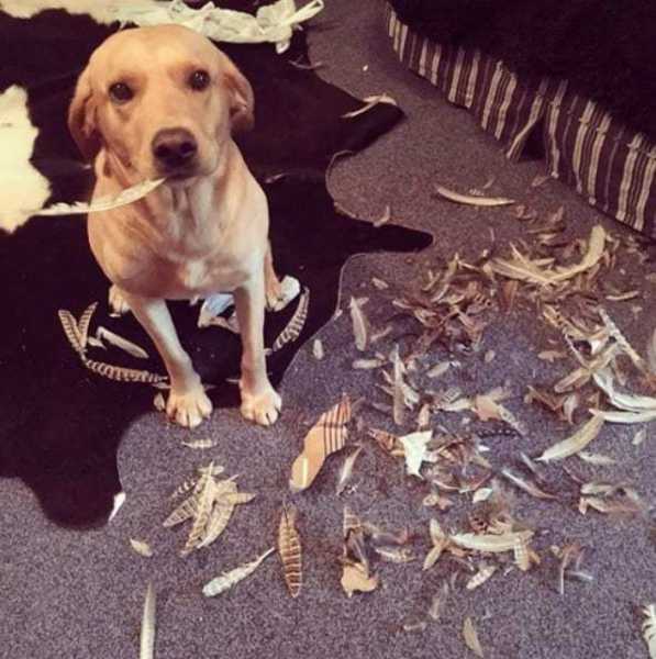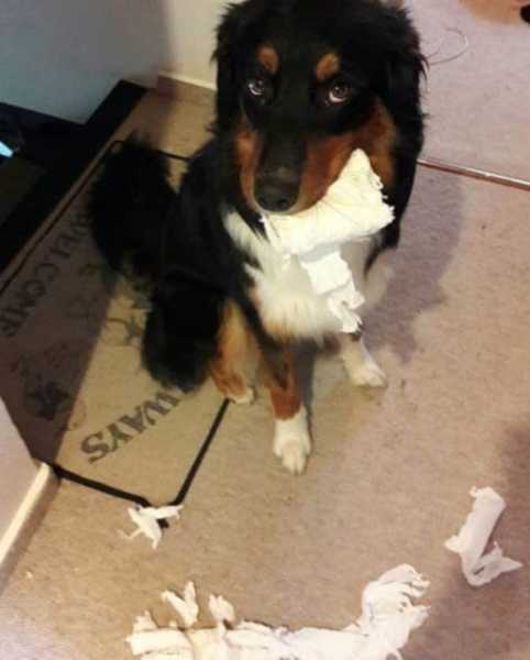 Чудова добірка собак, що проштрафилися, спійманих на місці злочину. І треба тільки бачити цей щирий, безневинний погляд, який дає зрозуміти, що все це зробив хтось інший.
