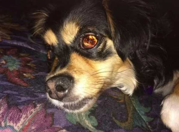 Сліпий собака з палаючими вогнями в очах на фото