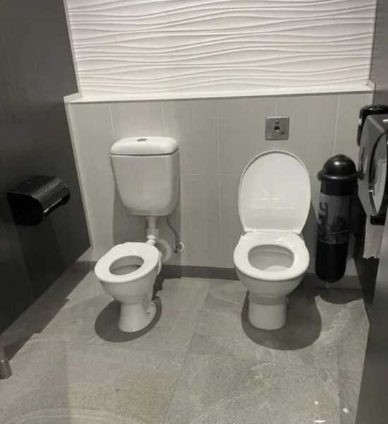 У цьому туалеті італійського супермаркету вода подається за допомогою натискання коліном на кнопку