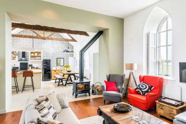 Головний зал – це основний елемент, який дає почуття простору і з його простотою він став серцем дизайну. Загальний простір будинку має сучасний та традиційний характер. Це знайшло своє відображення у виборі меблів та оздоблення. Всі матеріали та дизайн відповідають характеру та зовнішньому вигляду будівлі. Традиційні матеріали використовувалися як повага характеру ландшафту та навколишніх будівель. Як серце будь-якого будинку, кухня та їдальня призначені бути відкритими та яскравими. Тому тут використовувалися готичні вікна з чудовим краєвидом на ландшафт. Мета зберегти традиційну атмосферу була досягнута шляхом збереження крокв із натуральним покриттям. Кухонні меблі спроектовані в домашньому сільському стилі та обрамлені характерною настінною плиткою. Використана традиційна плитка для покриття повної висоти задньої стіни доповнюється високою стелею та відчуттям простору. І нарешті, торкаючись розташування каплиці, варто відзначити, що вона знаходиться в ідеальному місці для незабутнього відпочинку, велосипедної прогулянки, скелелазіння, риболовлі або просто для проведення часу з книгою та келихом вина. Перебуваючи на горбистій місцевості, будинок забезпечений миром та спокоєм поблизу міських магазинів, ресторанів та пабів.