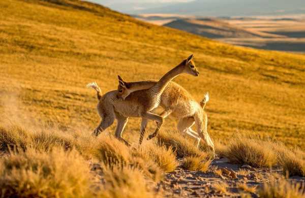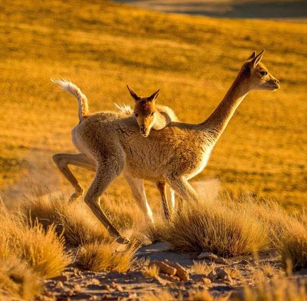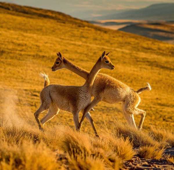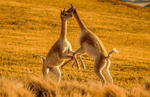 Виявляється, такі милі тварини як вікуні теж можуть бути агресивними. Далекі родичі лам не поділили територію у пустелі Атакама. У потрібному місці і в потрібний час опинився 24-річний фотограф з Бразилії Енріке Ольсен де Ассумпсан під час подорожі Чилі. Фотограф зробив кілька знімків бою двох лам, який більше нагадує обіймашки.