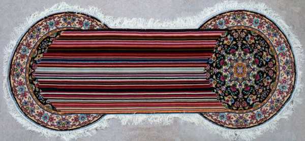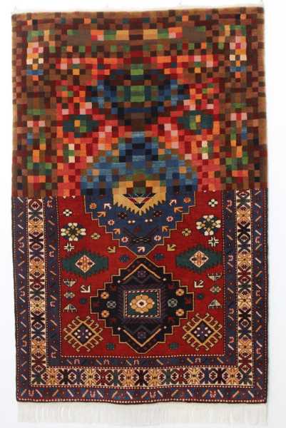 Азербайджанський художник Фаїг Ахмед створює традиційні килими з цифровими глітчами та глюками, які зазвичай притаманні світові комп'ютерів. Деякі з його килимів виглядають як наполовину картина, що недовантажилася, інші ніби випробували на собі дію інструментів фотошопу або втрату даних з файлу.