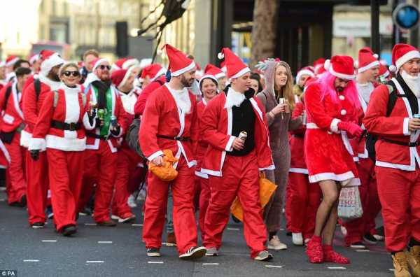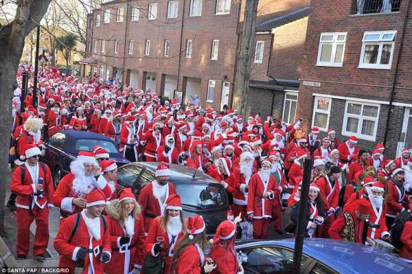 Безліч юних осіб, вбраних у вбрання Дідів Морозів та Санта Клаусів, вийшли на вулиці Лондона минулої суботи на традиційний Сантакон. Дану традицію молодь запозичила з-за океану, з Сан-Франциско, і у події тільки одна умова — необхідно бути у святковому костюмі. Санти слонялися вулицями з алкоголем у руках, відвідували бари та пивні заклади, не минулося без штовханини та всюдисущого обнімання рослинності.