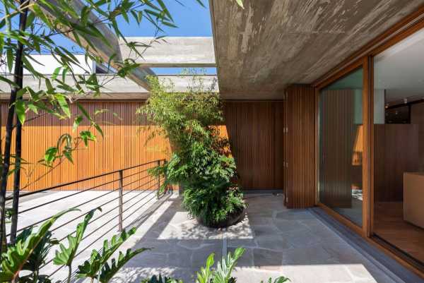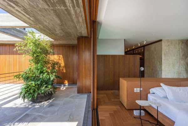 Однією з головних родзинок проекту є висока дерев'яна альтанка, що забезпечує усамітнення на верхньому поверсі будинку. Яскраве сонячне світло ефектно фільтрується через ніжне листя навколишньої рослинності і привносить у спальні відчуття додаткової свіжості навіть у найспекотніші літні дні.