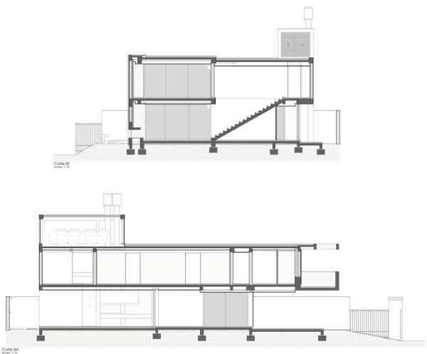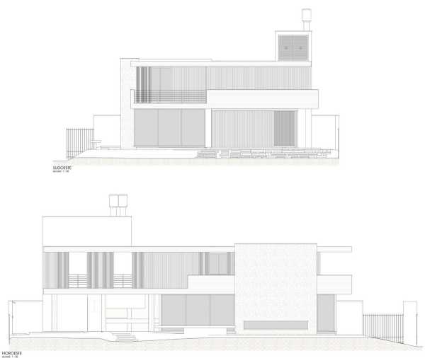 Двоповерховий будинок площею 530 квадратних метрів має у своєму розпорядженні всі необхідні для сімейного відпочинку та прийому гостей функціональні зони. Нижній поверх відведено під громадський простір відкритого плану. Вітальня, їдальня та кухня мають безперешкодний зв'язок з терасами, басейном та садом. Верхній поверх займає приватна зона із чотирма спальнями.