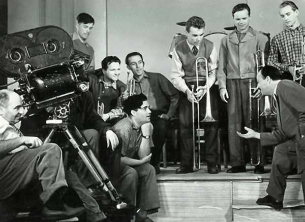 Ельдар Рязанов та оркестр Едді Рознера на зйомках фільму «Карнавальна ніч».