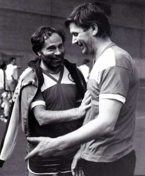 Італійський актор Франко Неро та Олександр Абдулов на футбольному матчі чемпіонату дипломатів та артистів, червень 1992 рік.