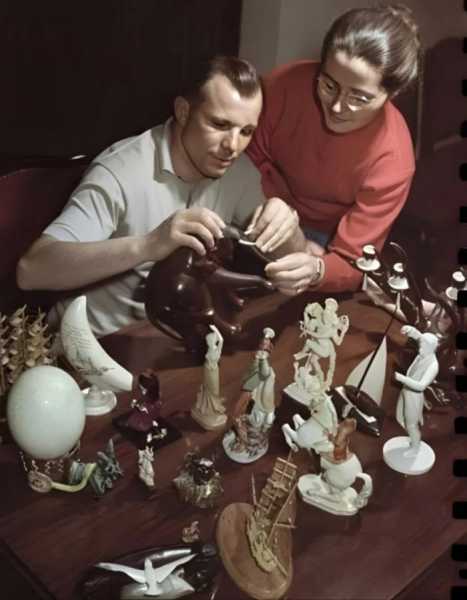 Юрій Гагарін та його дружина розглядають подарункові сувеніри. Москва, 1963 рік