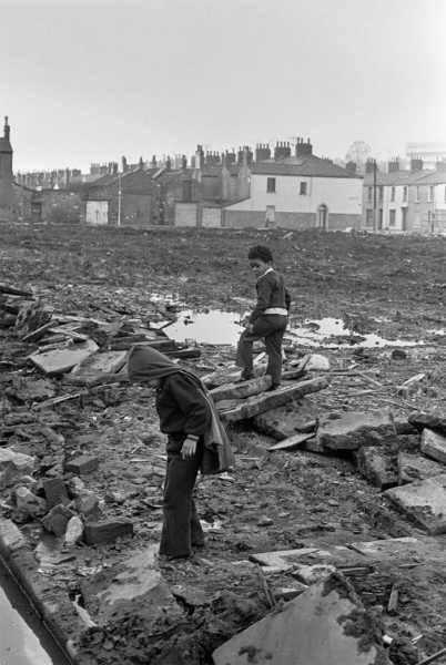 Малеча грається на території розваленого будинку. Ньюпорт, 1974 рік
