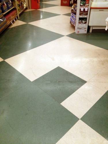 Ласкаво просимо до візуального кошмару для любителів симетрії та точних ліній. Ці фотографії – справжній тест на витримку: плитка, укладена поспіхом, повз розмітку, навперекій і просто … чому? Підлога, настінна — ніхто не застрахований. Візерунок збитий, шви танцюють, а ідеальний ритм так і не стався.